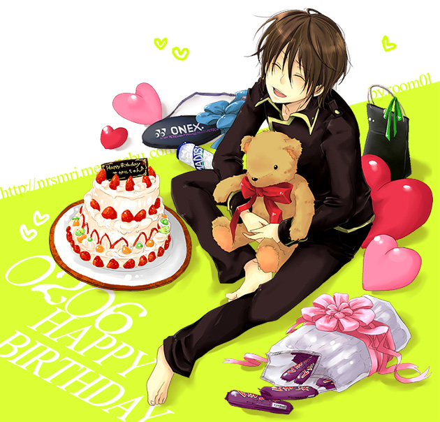 01号室の野村零一さまのところで配布されていたお誕生日山崎を攫ってお嫁に頂きました。はぁはぁ。 真選組のみんなに愛されてる愛され山崎可愛すぎる。 いっぱいプレゼントもらってちょっと困ってるの可愛すぎる。 誰がどんなプレゼントあげたかは、野村さんのサイトにございますのでぜひご覧になってください。 そしてやっぱり山崎には緑が似合うなあ! と勝手に感動しました(笑)